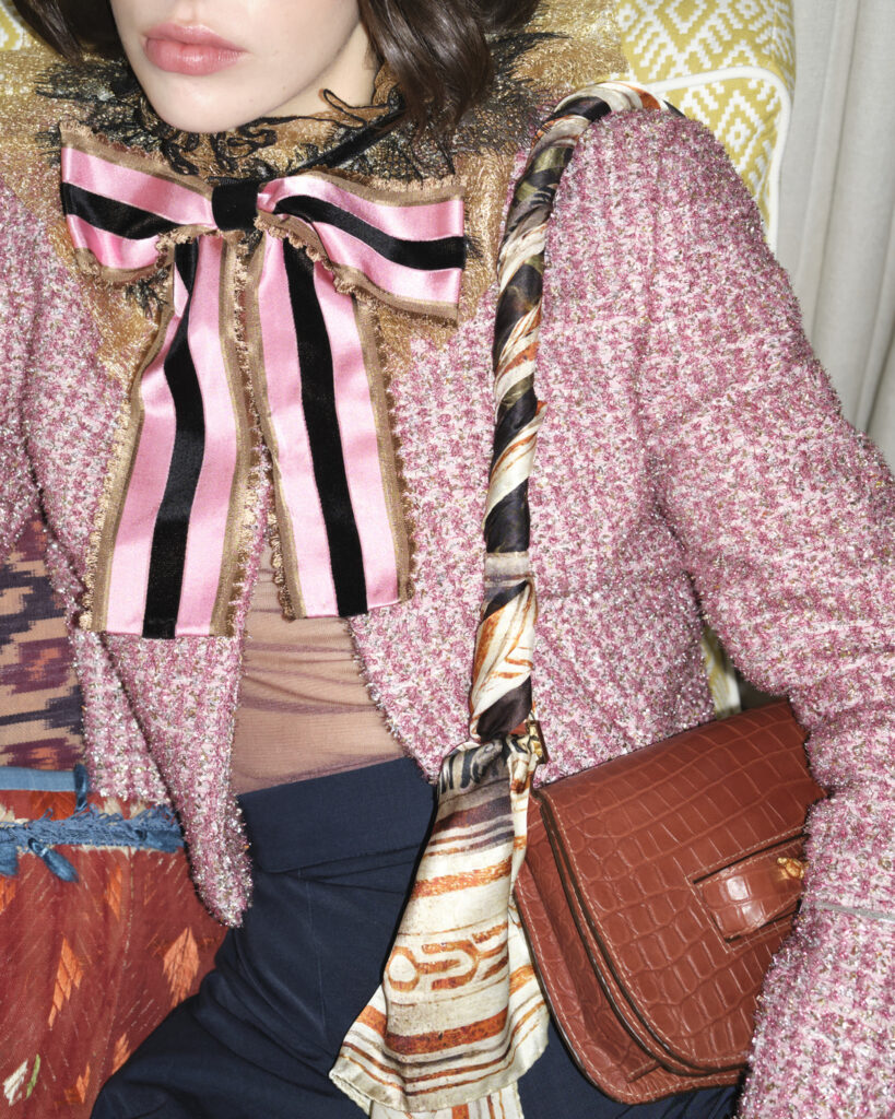 Azzopardi’s philosophy runs counter to the pace of modern fashion. He works with archival fabrics, some from the 1960s — embellishing them by hand, blending old and new until they transcend time. “They don’t have a lot of hanger appeal,” he laughs, “but that’s a good thing, because they come alive on the body,” he adds, “A successful garment to me, is when you have structure and shape, but also a lot of lightness to it. When you can see all the way through the construction.”